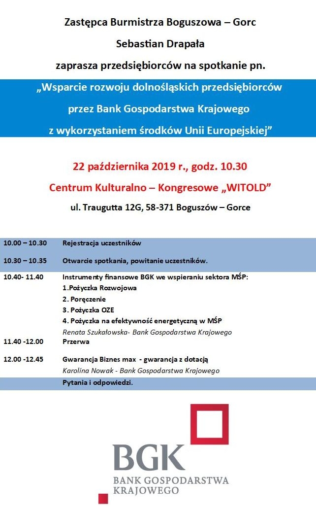 Tematem spotkania będzie wsparcie rozwoju dolnośląskich przedsiębiorstw przez Bank Gospodarstwa Krajowego z wykorzystaniem środków unijnych.