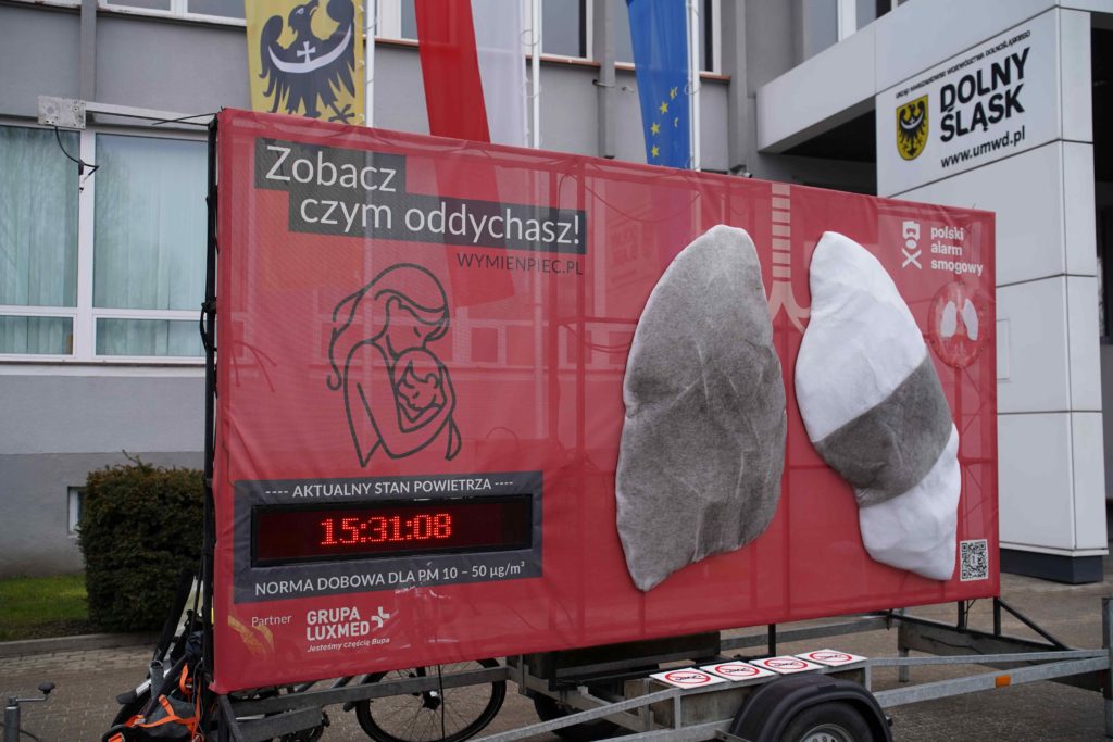 Na półmetku sezonu smogowo-grzewczego we Wrocławiu pod siedzibą władz województwa stanęły mobilne antysmogowe płuca. To tu przed ponad ośmiu laty Sejmik Województwa Dolnośląskiego przyjął jednomyślnie uchwałę antysmogową zakazującą w regionie pieców kopciuchów od 1 lipca 2024. Choć wiele już się udało osiągnąć, nadal sporo jest jeszcze do zrobienia zauważają zebrani przed urzędem przedstawiciele samorządu oraz liderzy społeczni z alarmów smogowych. W likwidacji toksycznych pieców kopciuchów jesteśmy w regionie na półmetku. Dla ich usunięcia kluczowe, oprócz akcji informacyjno-edukacyjnych, jest wsparcie finansowe dla mieszkańców połączone z kontrolami.