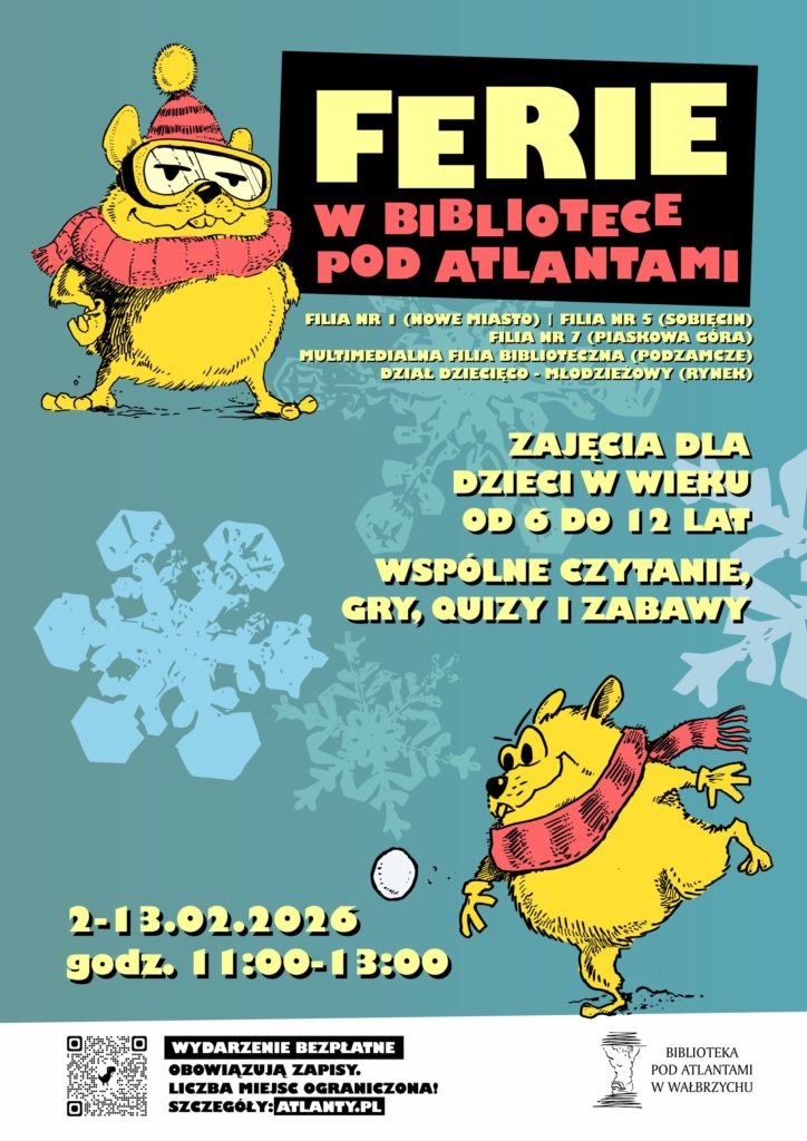 Już od przyszłego poniedziałku (2 lutego) Biblioteka pod Atlantami zamieni się w kreatywne centrum zimowej rozrywki. W pięciu placówkach na terenie miasta rusza cykl bezpłatnych zajęć dla dzieci. Na uczestników czekają gry, quizy i literackie podróże, które udowodnią, że zima w mieście może być pełna pasji.