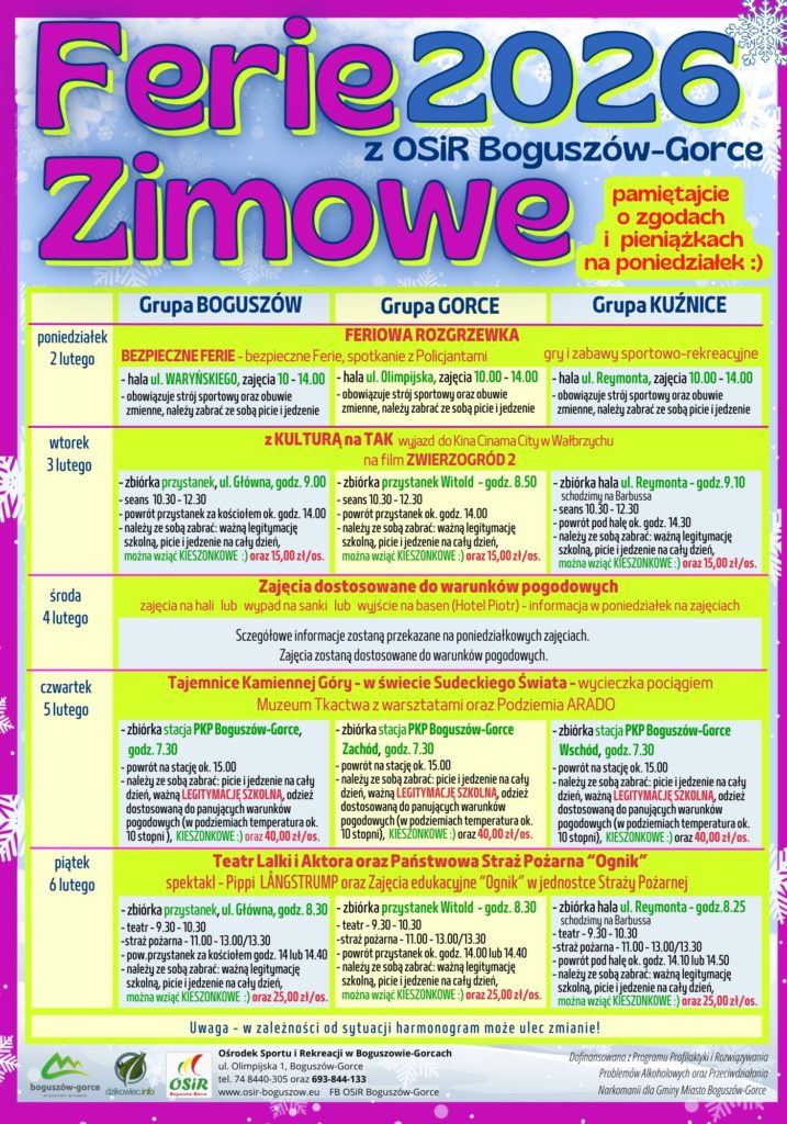 Boguszów-Gorce zaprasza na ferie i nie tylko..