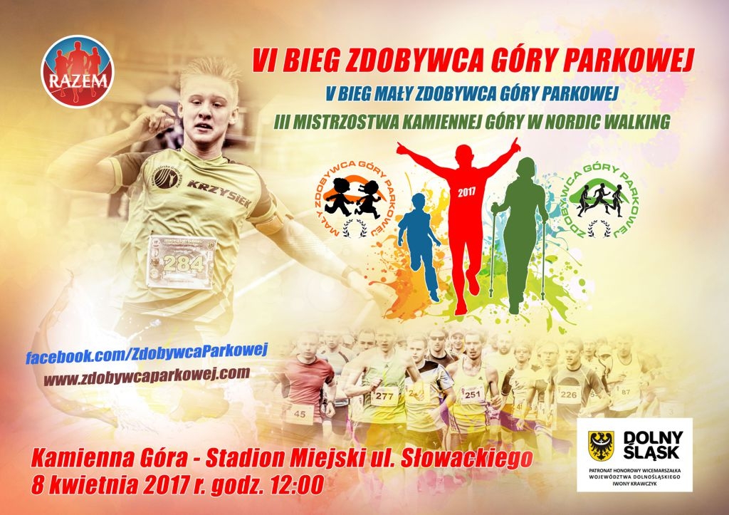 Przypominamy, że już jutro, o godzinie 12.00 ze Stadionu Miejskiego w Kamiennej Górze startuje VI Bieg Zdobywca Góry Parkowej. Równolegle do głównego wydarzenia odbędą się III Mistrzostwa Kamiennej Góry w Nordic walking. Godzinę wcześniej na starcie V Bieg Mały Zdobywca Góry Parkowej przedszkolaki.