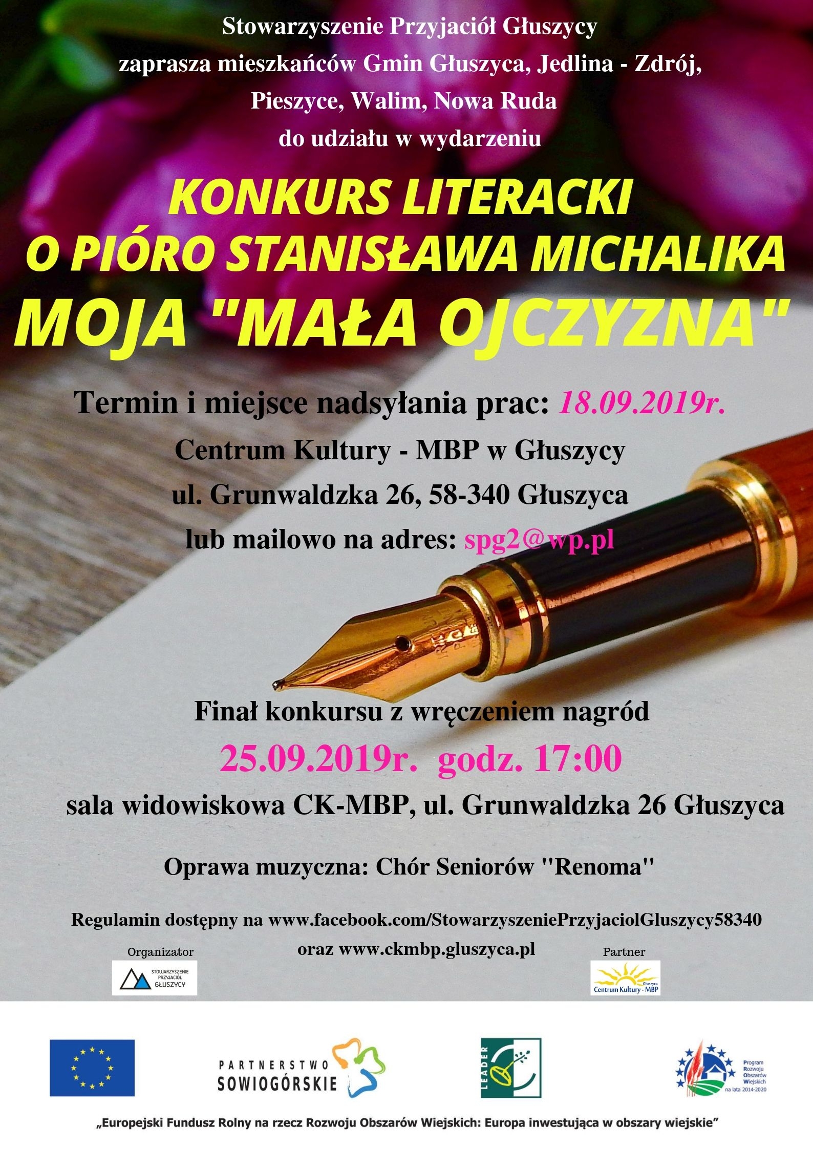 Stowarzyszenie Przyjaciół Głuszycy zaprasza mieszkańców Gmin Nowa Ruda, Głuszyca, Pieszyce, Jedlina-Zdrój, Walim do udziału w Konkursie Literackim o Pióro Stanisława Michalika Moja „mała Ojczyzna”.