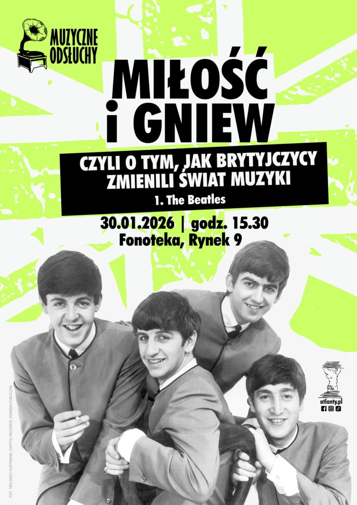 Cykl pod hasłem „Miłość i gniew – czyli o tym, jak Brytyjczycy zmienili świat muzyki” to połączenie merytorycznego wykładu z odsłuchem oraz projekcją materiałów audiowizualnych. Podróż przez historię dźwięków zaczynamy od fundamentów – fenomenalnej czwórki z Liverpoolu, czyli zespołu The Beatles.