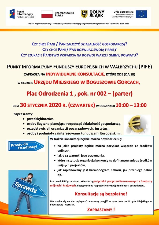 Wciąż słyszysz o Funduszach Europejskich? Masz znajomych, którzy dzięki nim rozwinęli firmę lub dostali pracę? Na to, by dołączyć do tego grona i skorzystać ze środków europejskich nigdy nie jest za późno. Zapraszamy na spotkanie konsultacyjne, aby znaleźć dofinansowanie odpowiednie dla Twoich potrzeb.