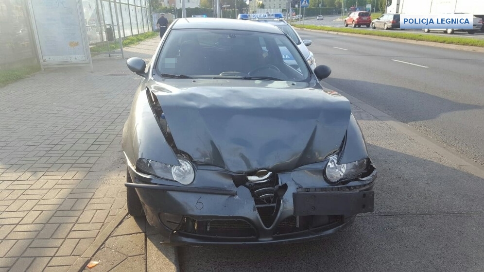 W poszukiwanie uciekiniera włączyło się kilka policyjnych patroli. Już kilka minut po otrzymaniu zgłoszenia funkcjonariusze zauważyli poruszający się pojazd marki Alfa Romeo z uszkodzonym przodem. Mundurowi natychmiast ruszyli za samochodem i zatrzymali do kontroli drogowej kierującego nim mężczyznę.