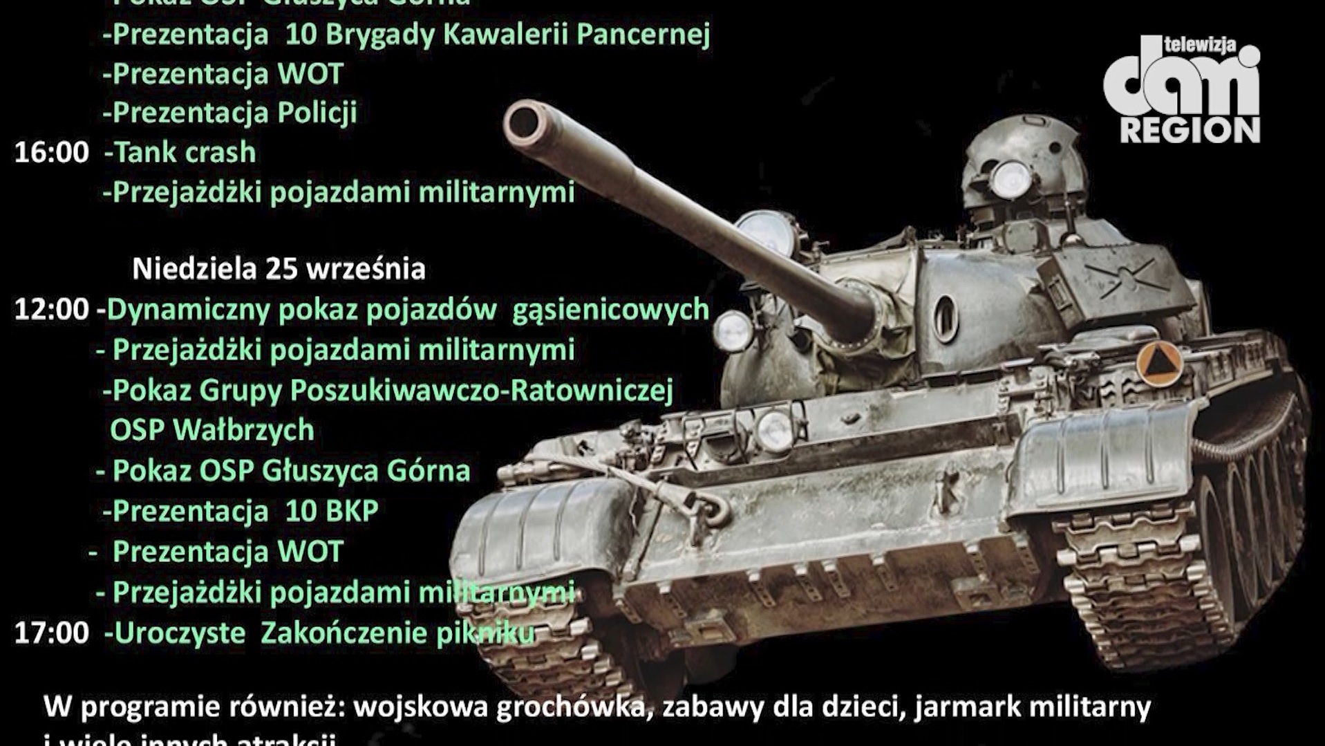 Czołgi, transportery i inny sprzęt wojskowy czekać będzie w ten weekend w Głuszycy. Na dobra zabawę, smaczną grochówkę i inne atrakcje zaprasza Fundacja Szlakiem Riese.