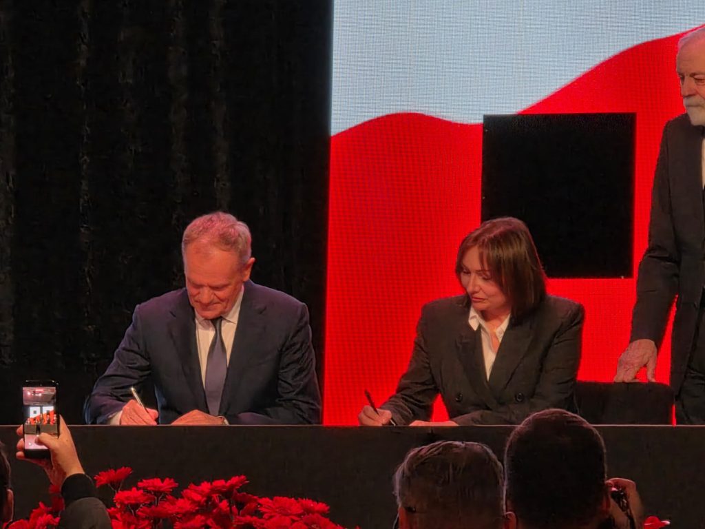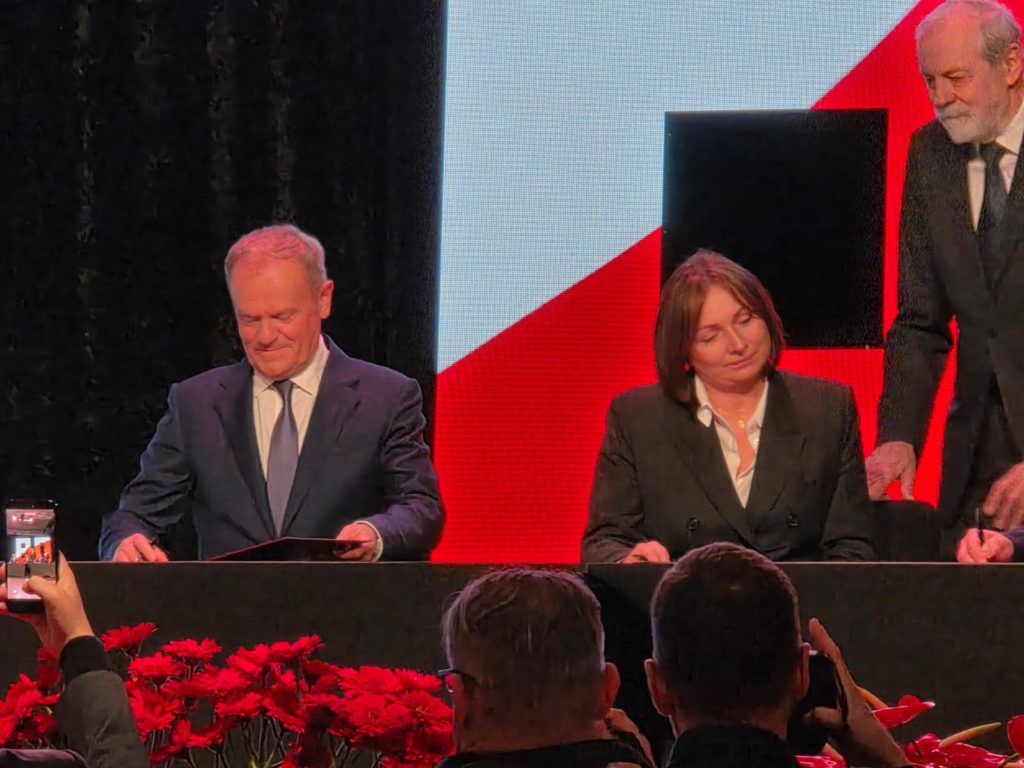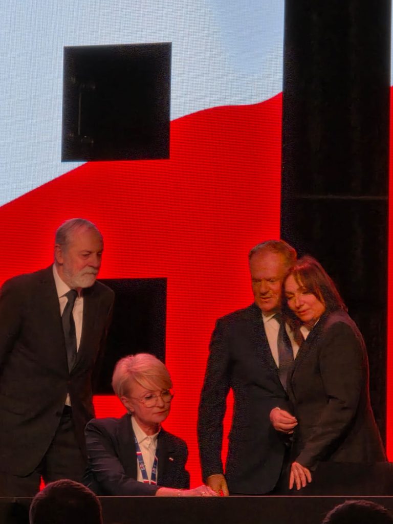 Prezydent Szełemej firmujący wizerunkowo wałbrzyskie obchody uznał, że krzesło dla wicemarszałek Wielichowskiej jest zbędne. To poniżenie drugiej w Sejmie i jednej z najważniejszych w Państwie kobiet pewnie by się Szełemejowi udało, gdyby nie premier Tusk, który pokazał prezydentowi Szełemejowi maniery i kulturę jaką prezentuje się na uroczystościach rangi Państwowej. Tusk wywołany na scenę wziął pod rękę Monikę Wielichowską i słowami „idziemy, idziemy” wprowadził na scenę gdzie odstąpił jej swoje krzesło. Premier chwilę stał za stołem patrząc na sygnatariuszy deklaracji.