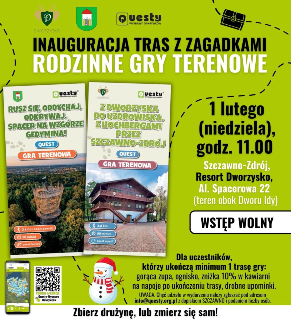 Opiekunami questów i partnerami wydarzeniami są Resort Dworzysko i gmina Szczawno Zdrój, którzy wspólnie zapraszają do rodzinnej zabawy!