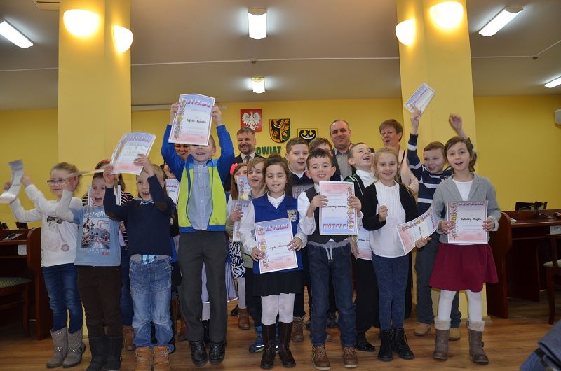 Ogłoszony przez Powiatową Poradnię Psychologiczno – Pedagogiczną Konkurs plastyczny dla klas 0-III pt” Mój pomysł na zawód” przyciągnął szerokie grono zainteresowanych uczniów ze szkół podstawowych Powiatu Wałbrzyskiego. Celem konkursu było rozbudzenie zainteresowań zawodowych, kształtowanie wyobraźni dotyczącej przyszłości zawodowej, wspieranie dziecka w rozwijaniu zainteresowań oraz sprawdzenie własnych umiejętności. Laureatom konkursu w dniu dzisiejszym tj. 18 luty 2016r. nagrody za najciekawsze prace wręczał Starosta i Wicestarosta Powiatu Wałbrzyskiego. Na zaproszenie Starosty Pana Jacka Cichury dzieci miały niecodzienną szansę zobaczyć jak wygląda praca Zarządu Powiatu Wałbrzyskiego. Odwiedziły kancelarię i gabinety członków Zarządu. Było wiele uśmiechu, radości i ciekawych pytań -być może od przyszłej Starościny lub Starosty… Nie obyło się bez pamiątkowych zdjęć, drobnych gadżetów i łakoci. „To wspaniała idea, która jak widać przyniosła dzieciom wiele radości i pozwoliła odkryć ich zainteresowania zawodowe. Sądzę, że właśnie takie inicjatywy pozwalają odkryć dziecięce talenty, które pielęgnowane, mogą w przyszłości zaowocować wspaniałą karierą zawodową”- mówi Starosta.