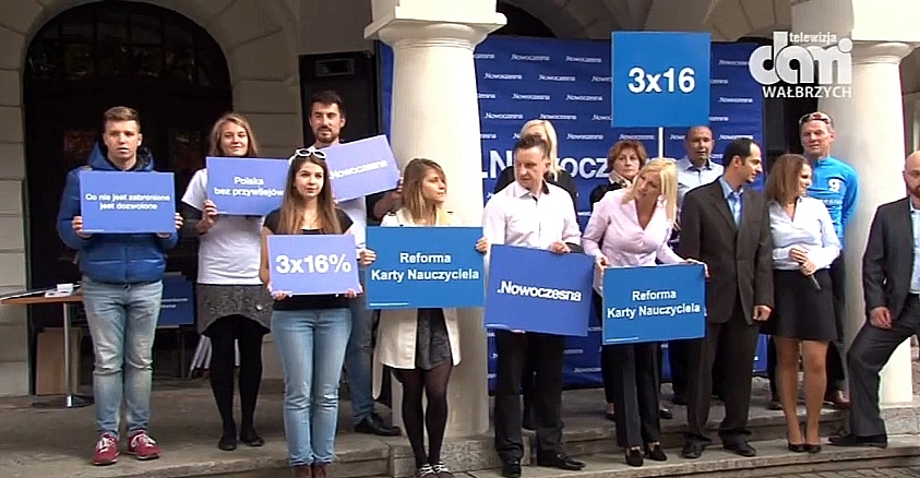 Lider partii Nowoczesna.pl przespacerował się po rynku, a następnie rozmawiał z dziennikarzami.