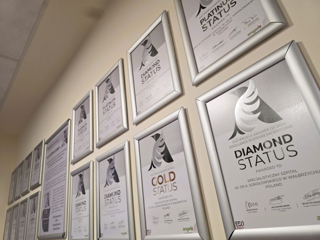 Kolejne diamentowe wyróżnienie z programu ESO Angels Awards dla Oddziału Neurologicznego w Specjalistycznym Szpitalu im. dra Alfreda Sokołowskiego w Wałbrzychu. To dowód na to, że placówka jest w czołówce światowej społeczności zajmującej się leczeniem udarów mózgu. Poziom ten utrzymuje od lat.