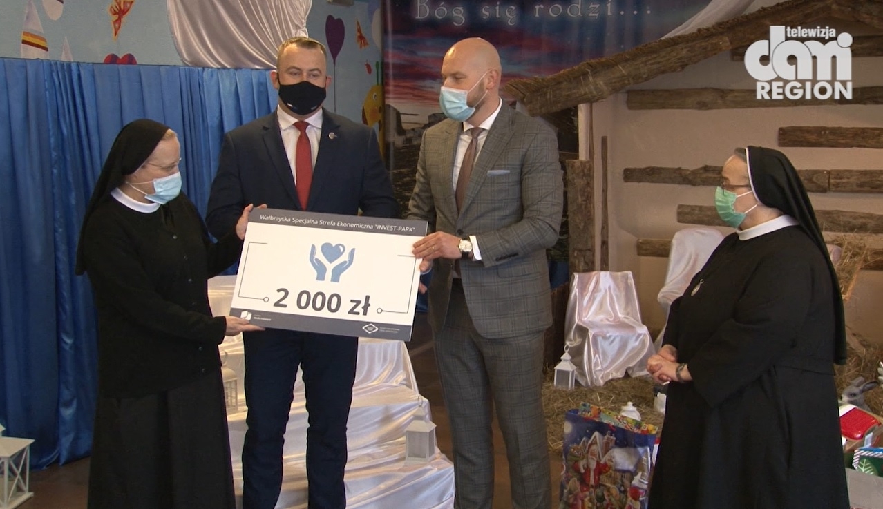 W imieniu Wałbrzyska Specjalna Strefa Ekonomiczna „INVEST-PARK”. Prezes Artur Siennicki przekazał wsparcie rzeczowe i finansowe na ręce sióstr prowadzących Zakład Leczniczo-Opiekuńczy w Piszkowicach i DPS dla Dzieci i Młodzieży Niepełnosprawnej Intelektualnie w Ścinawce Dolnej. Prezenty dla Wychowanków z obu placówek przygotowali wspólnie zarząd i pracownicy WSSE „INVEST-PARK”. Głęboko wierzymy, że dzięki naszej pomocy tegoroczne. Święta Bożego Narodzenia będą dla Podopiecznych z Kotliny Kłodzkiej bardziej radosne i magiczne.