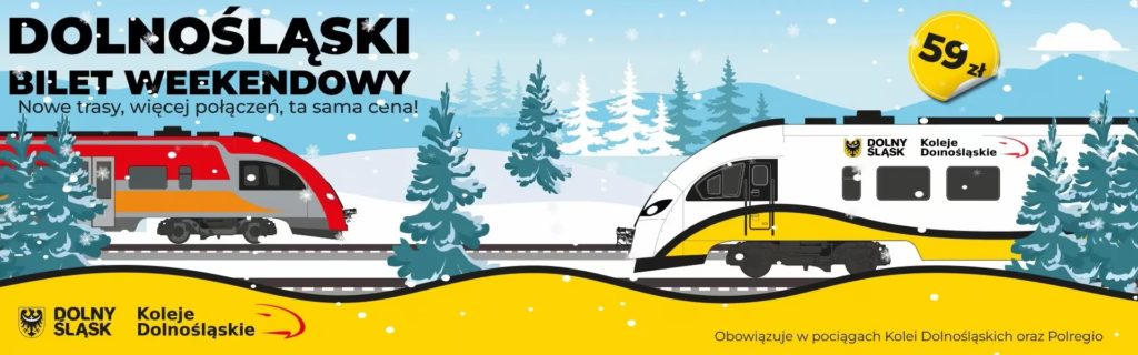 Dzięki porozumieniu dwóch wiodących przewoźników regionalnych Dolnośląski Bilet Weekendowy obowiązuje w pociągach Kolei Dolnośląskich i POLREGIO. Teraz możesz korzystać z jeszcze większej liczby połączeń!