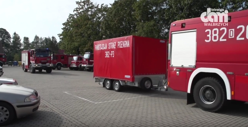 Trenowano gaszenie pożaru w krzeszowskim opactwie.